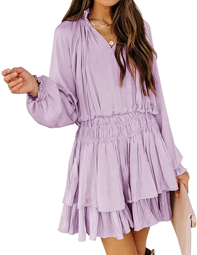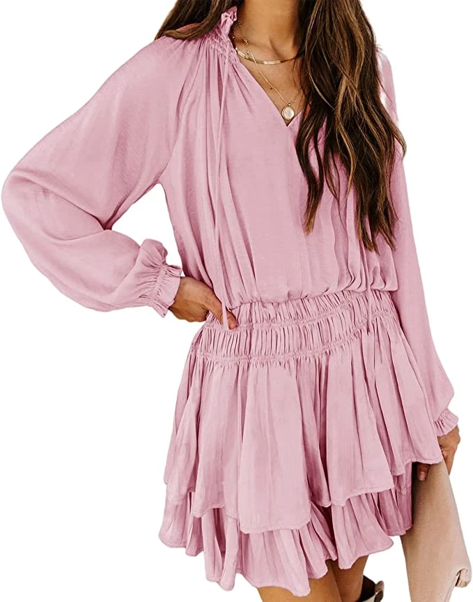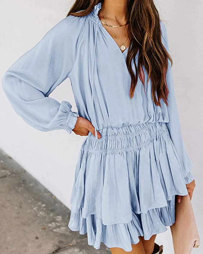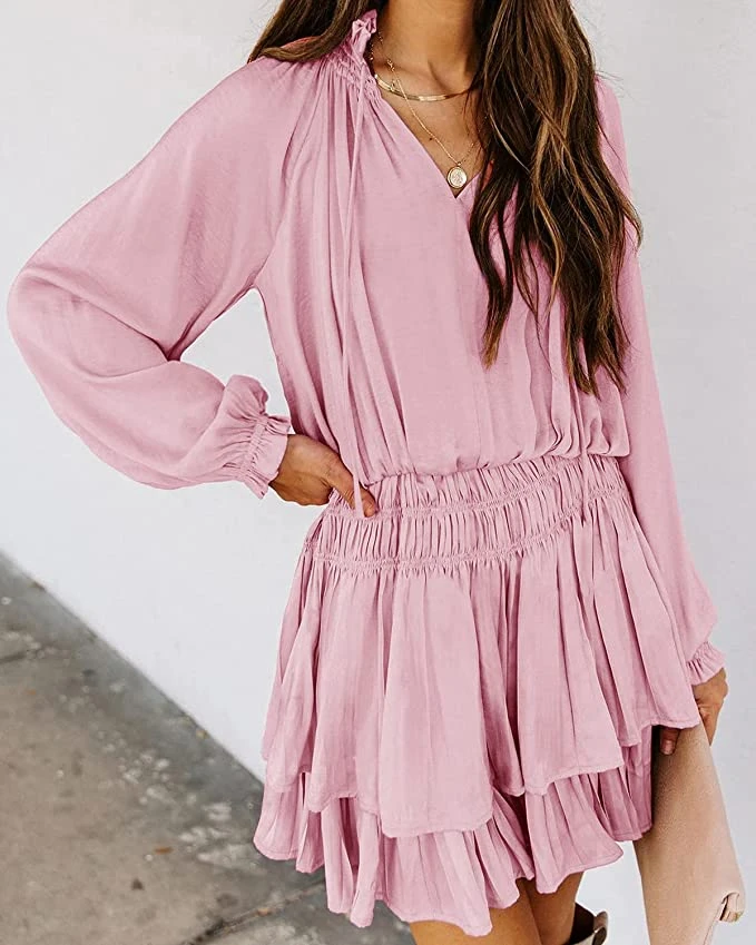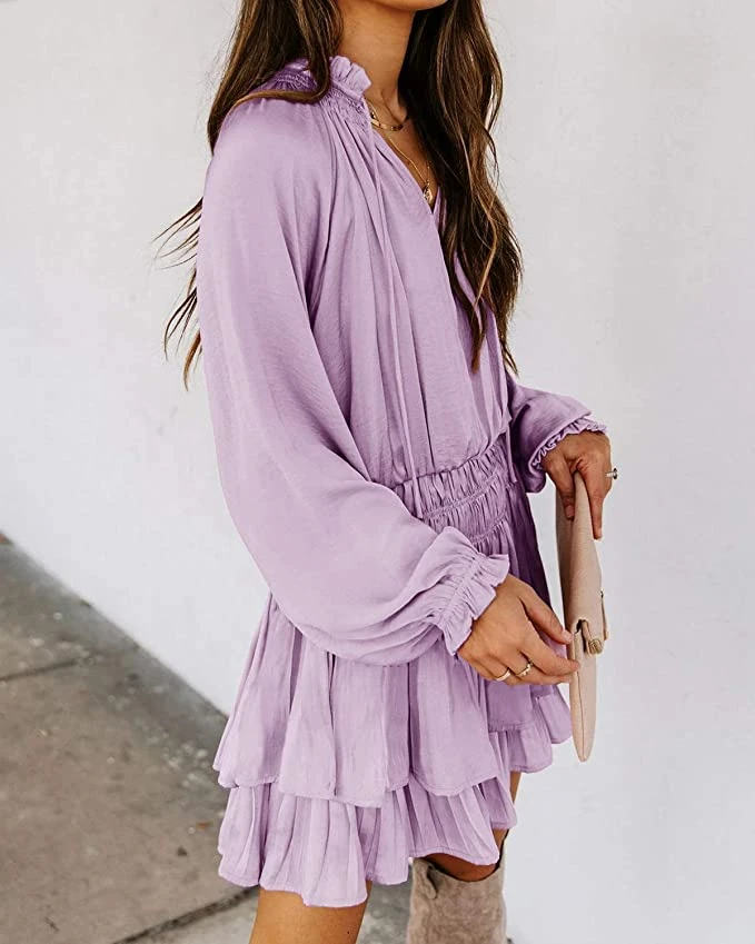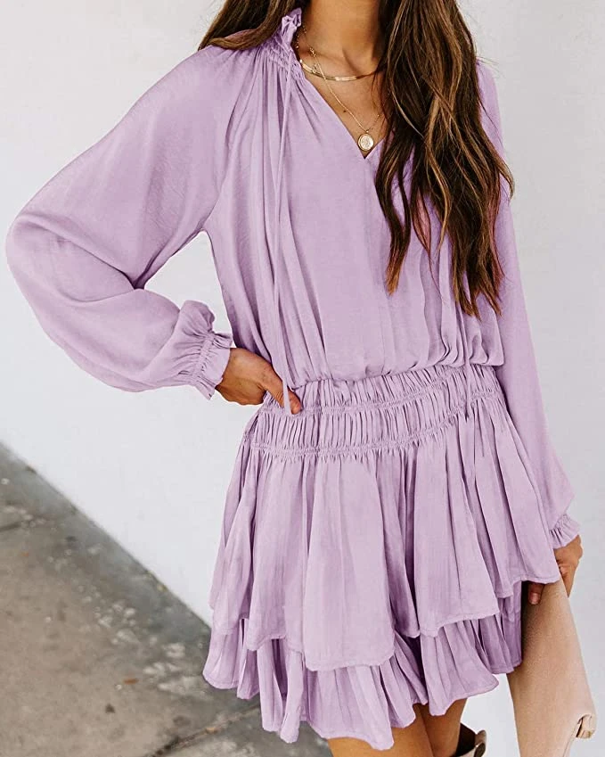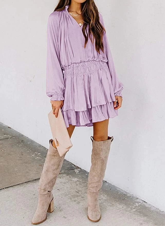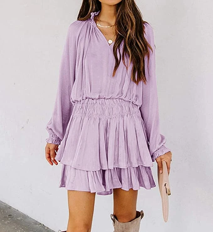 There’s nothing sweeter than a warm bay breeze… until we met this dress. In perfect light pink, baby blue, and lilac, this boho style ruffle mini dress is ideal for baby showers, engagement parties, or even just girls night out! Long sleeve feature gorgeous detail, a ruched stretch waist and tiered ruffle hemline. Finish this outfit with neutral boots for early spring, or wedge sandals as we go into summer!