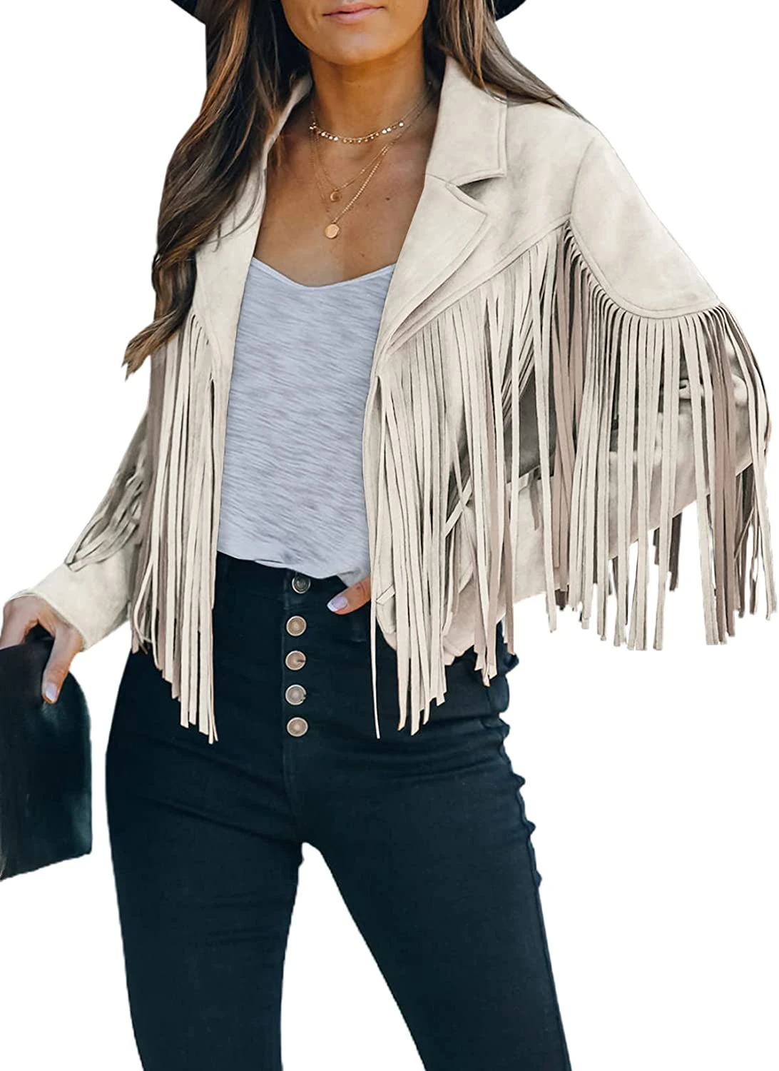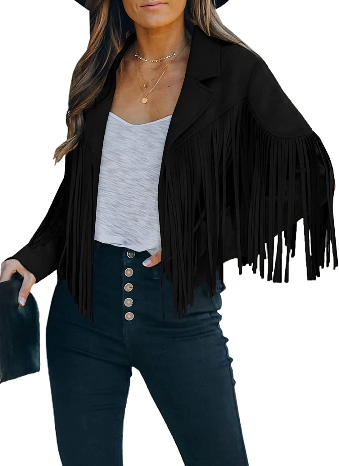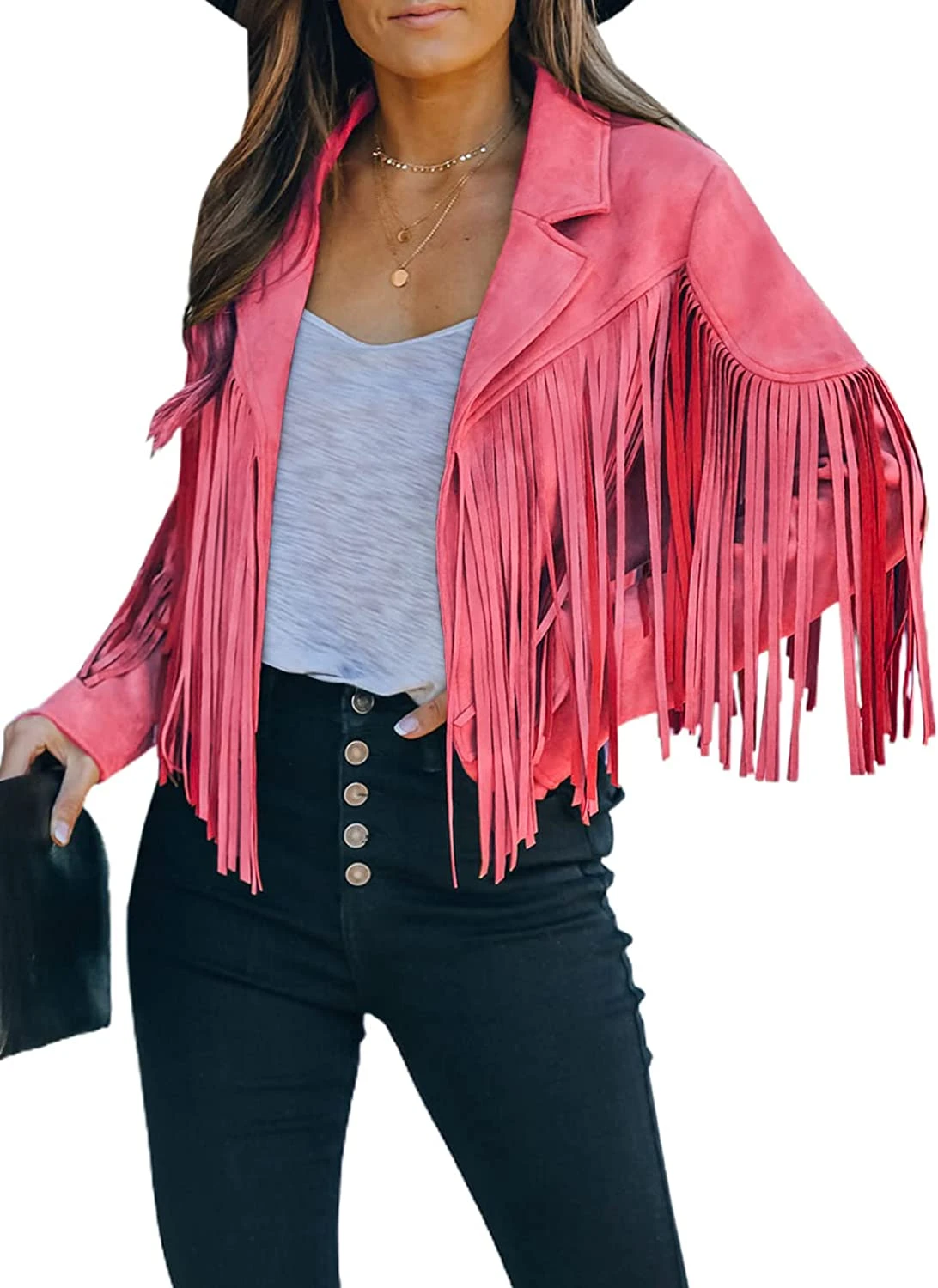A Fringe Jacket so darling, even Dolly will be seeing stars! The Dolly Faux Suede Fringe Jacket features a buttery soft material, making it perfect to transition through seasons. Full fringe wraps from front to back, making it nearly impossible to stop yourself from twirling your way through any room or across the dance floor. Embrace the spirit of the wild west and cowgirl ways in three adorable colors, Pink, Creamy Beige, and Black, and pair it up with your favorite cutoff jeans and cowboy boots.Â
