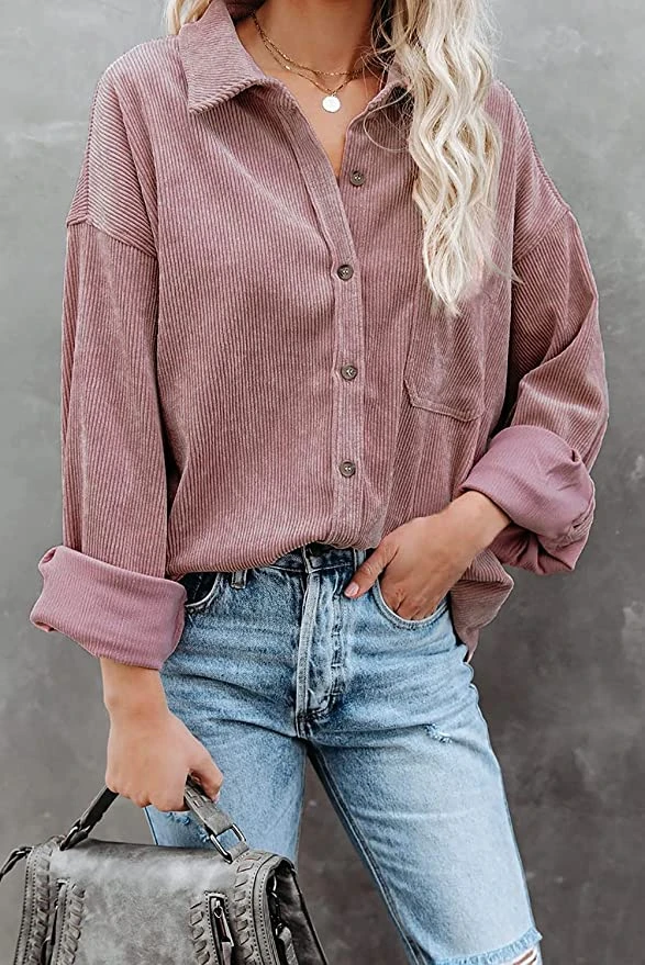 Out with the old, and In With the New Shacket, because the hybrid oversized shirt jacket has never looked better. Sure we could steal our man’s flannel, but would we be able to beat this gorgeous dusty rose-colored corduroy?! Not. A. Chance! Wear it solo, tucked into your favorite jeans, or throw it over a crop top for those in-between hot and cold days for a relaxed fit look.