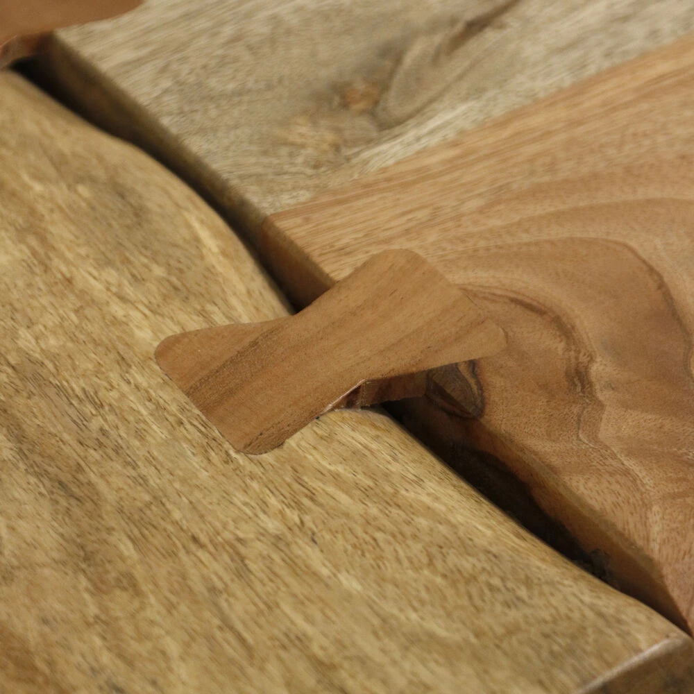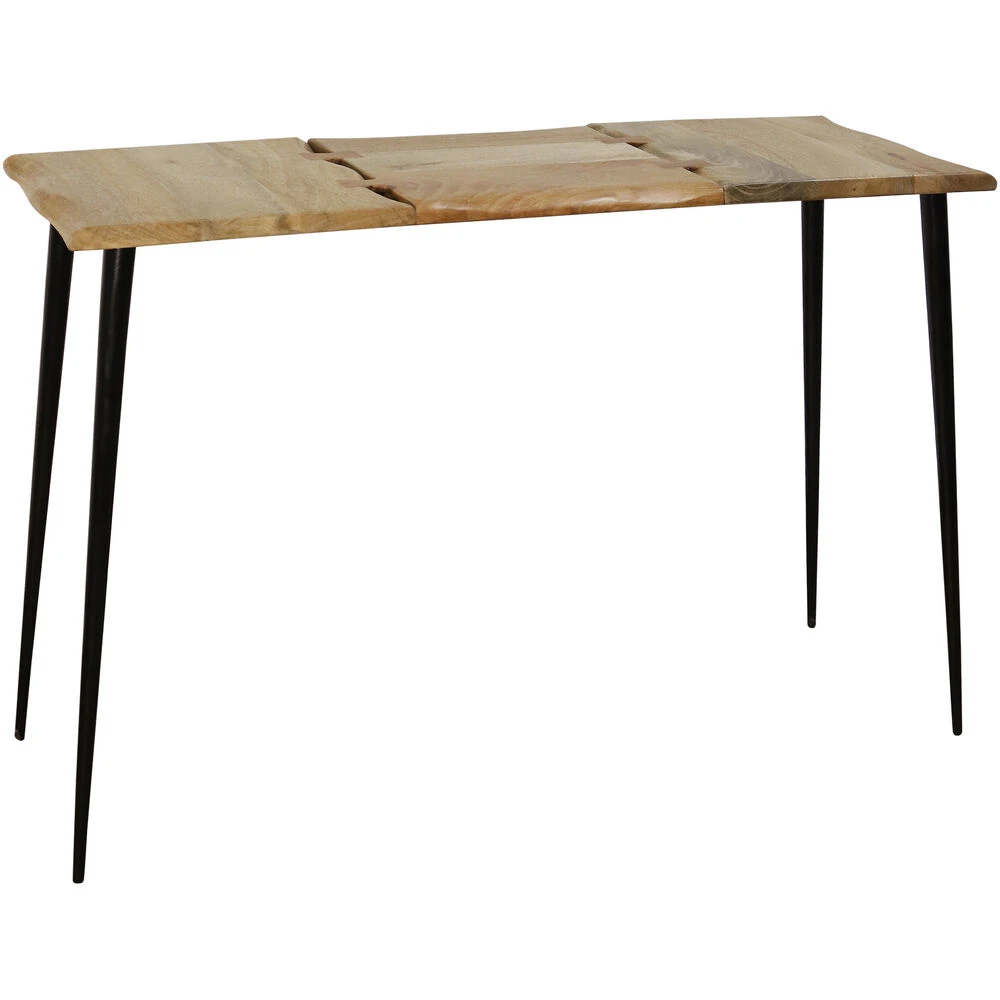 - This console table is composed of three live edge natural finished solid acacia panels with butterfly joints for its table top.