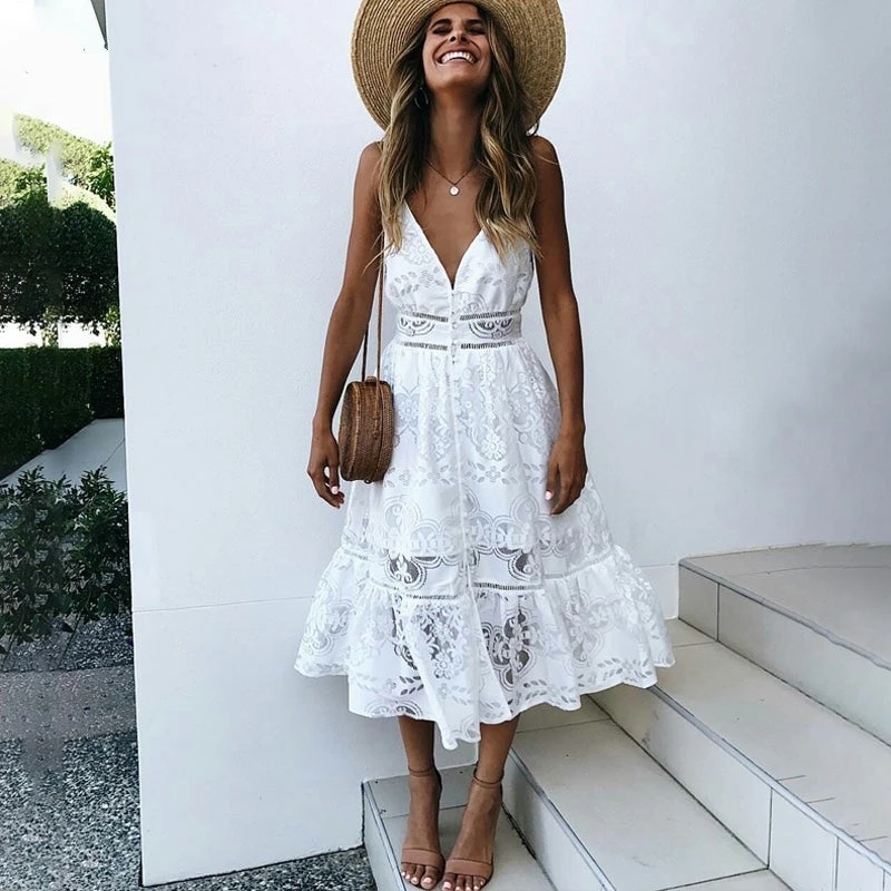 No lining at back, non-elastic waist, no zipper. Button closure down front. Mid-calf length.