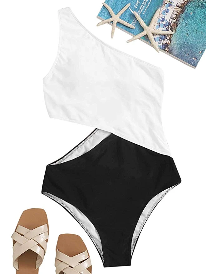 - Features: Two tone, one shoulder, cutout, sexy one piece swimsuits for women.